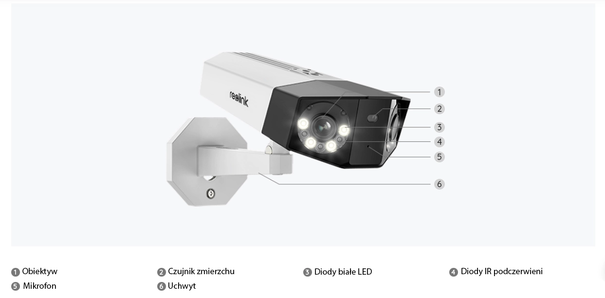 Dzięki zastosowaniu dwóch obiektywów, Reolink Duo 2 posiada szeroki kąt widzenia bez utraty na jakości w obrazie.