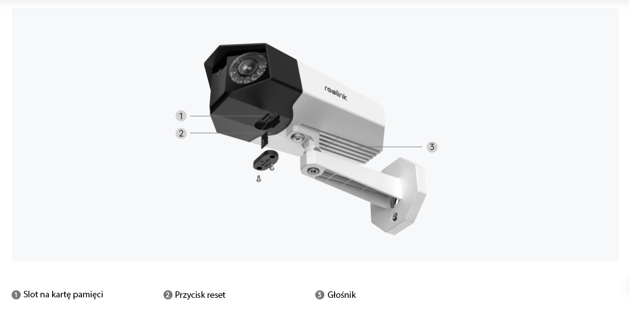 Karta micro SD (nie jest w zestawie) - Nagrania po wykryciu ruchu na kartę pamięci. Maksymalna pojemność karty 128 GB