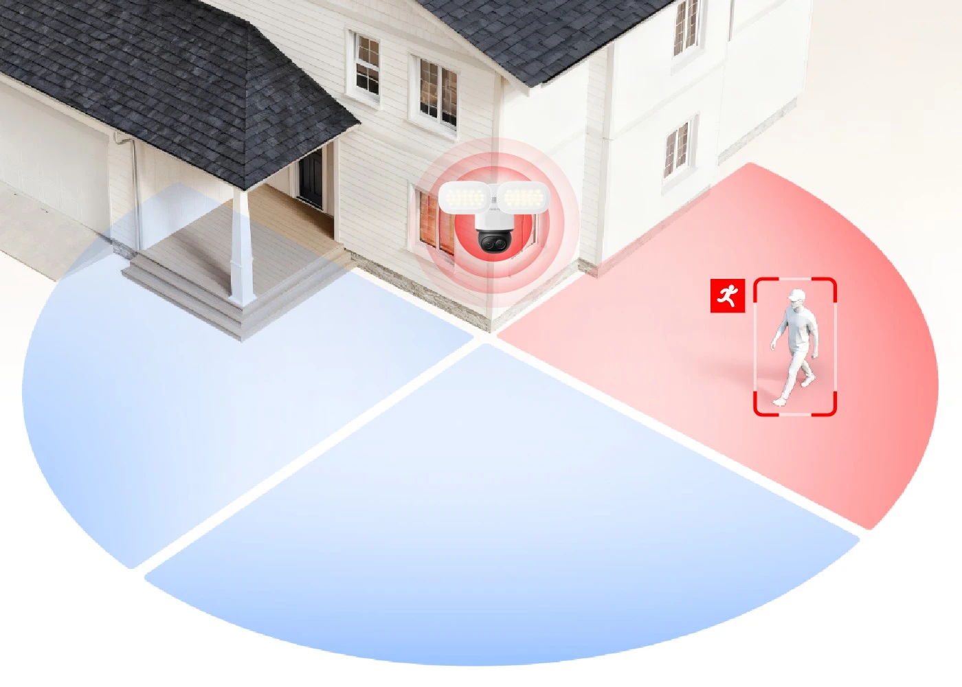 Rozświetla teren i skutecznie odstrasza intruzów już w momencie wykrycia ruchu.