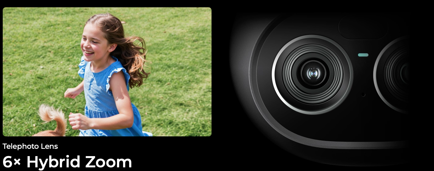 - Podwójny obiektyw z hybrydowym zoom 6x