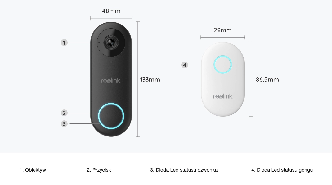 Video dzwonek z gongiem Reolink PoE | jakość 2K | kąt 180 stopni | tryb nocny