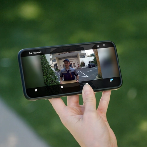 - Szybsza odpowiedź dla odwiedzających: dzięki wbudowanemu mikrofonowi i głośnikowi możesz usłyszeć swoich gości i rozmawiać z nimi, nawet jeśli nie ma Cię w domu. Można również ustawić wstępnie wiadomości głosowe lub automatyczne odpowiedzi w czasie kiedy jesteś zajęty.