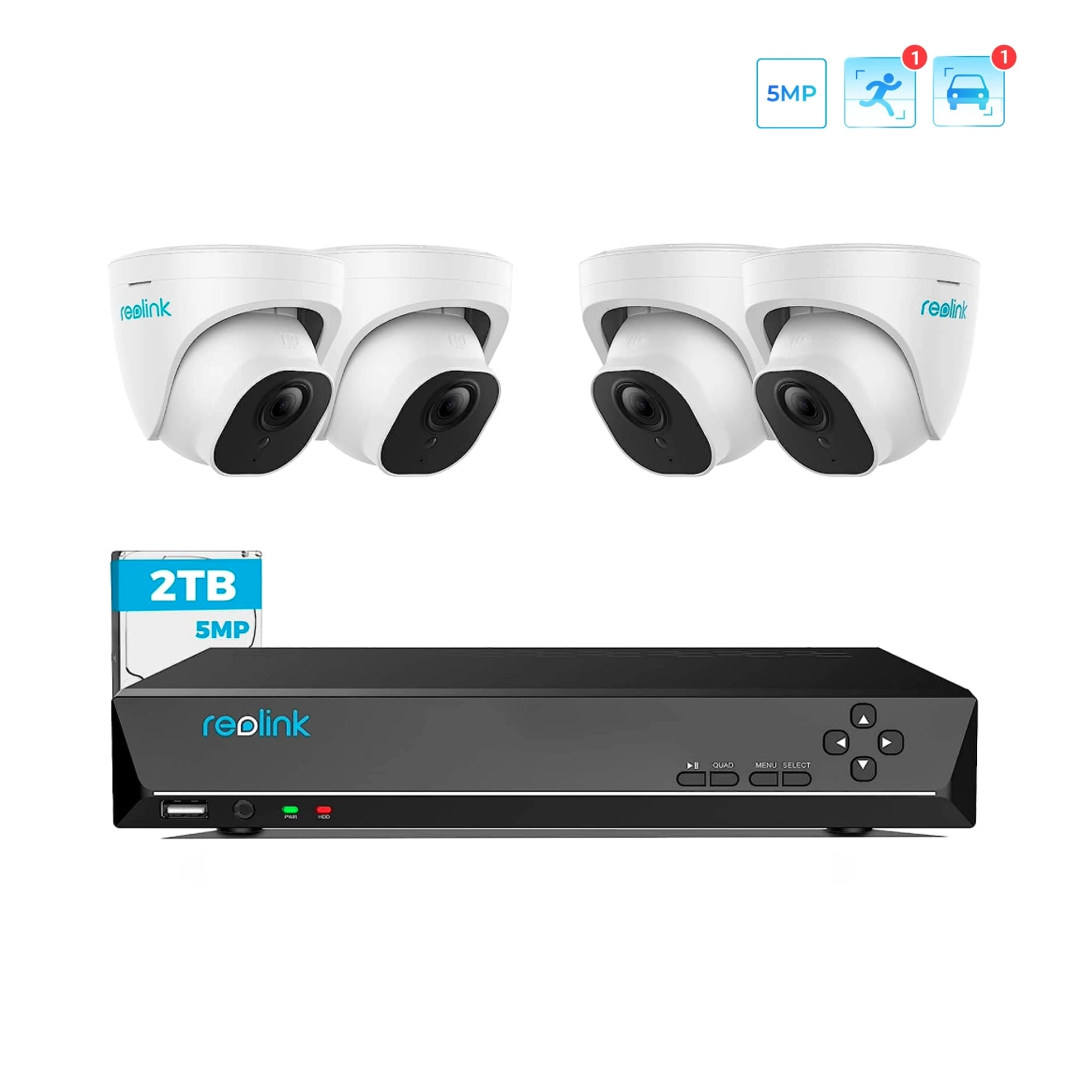 Zestaw Rejestrator 8 kanałów 2 TB i 4x Kamera zewnętrzna Reolink RLC520A-5MP | POE | Wykrywanie pojazdów i ludzi (1)